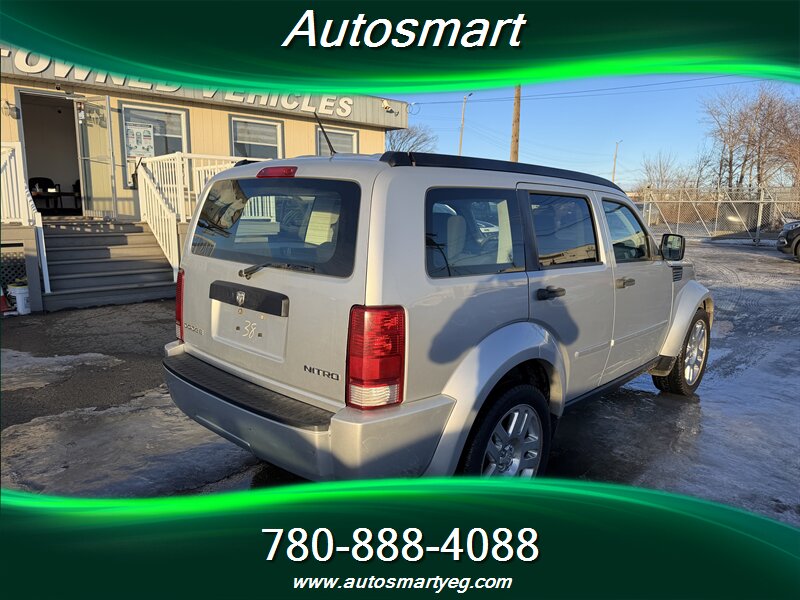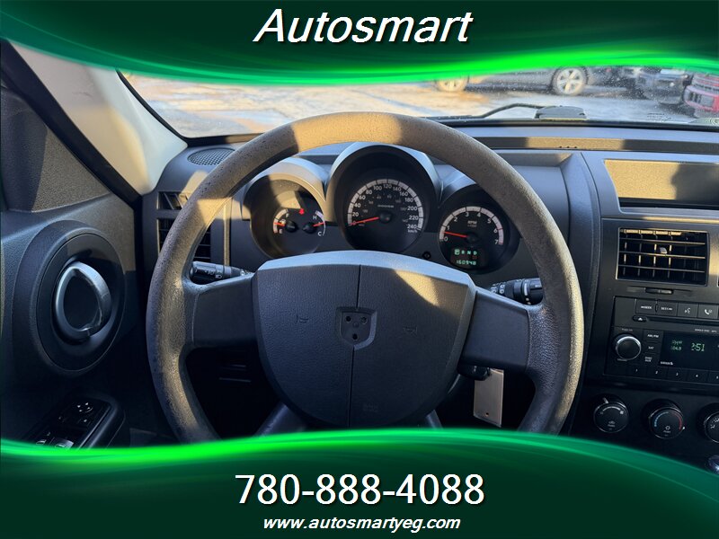 2009 Dodge Nitro SE powered by a 3.7L V6 (210 hp, 235 lb-ft). Factory equipment includes cloth seating for five with 60/40 split-folding rear bench, power windows and door locks, remote keyless entry, air conditioning, cruise control, tilt steering, AM/FM/CD audio with auxiliary input, alloy wheels, roof rails and a rear wiper for added utility. Standard safety features include front and side airbags, anti-lock brakes (ABS) and traction/stability control. Vehicle is in excellent overall condition, has good mileage (under 161,000 km, averaging less than 9,000 km/year), returns 14.7 L/100 km city and 10.7 L/100 km highway, and has a CARFAX.