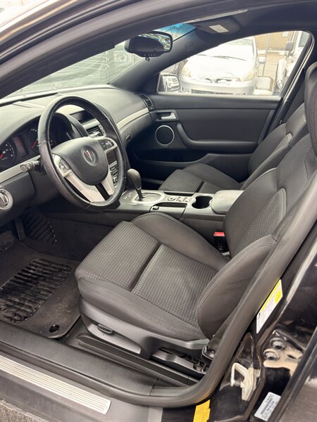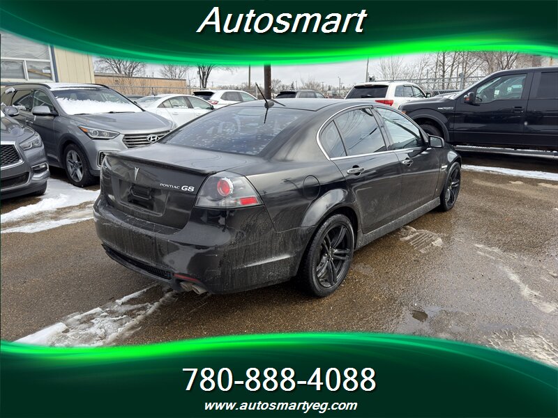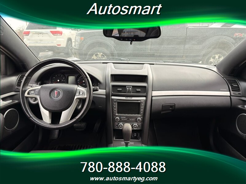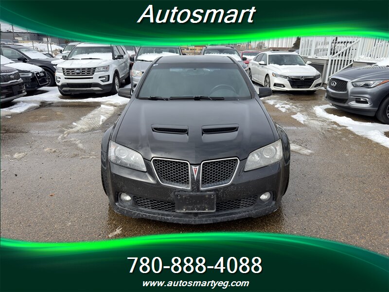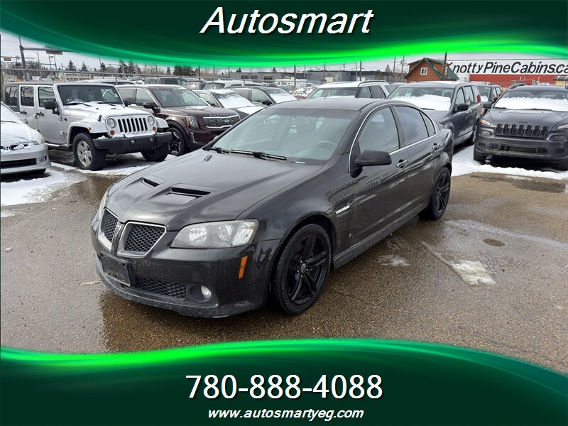 2009 Pontiac G8 GT w/Bluetooth, powered by a 6.0L V8 that makes 361 hp and 385 lb-ft of torque. Factory equipment includes multi-stage front airbags with side-impact and head-curtain airbags, ABS with traction and stability control, ventilated disc brakes and a limited-slip differential; convenience and comfort features such as power windows/locks/mirrors, remote keyless entry, cruise control, automatic climate control, leather-trimmed seating with power adjustments, alloy wheels, and an AM/FM/CD audio system with Bluetooth and auxiliary input. Fuel economy is 15.7 L/100 km city and 9.8 L/100 km highway; the vehicle is in excellent overall condition and has a CARFAX.