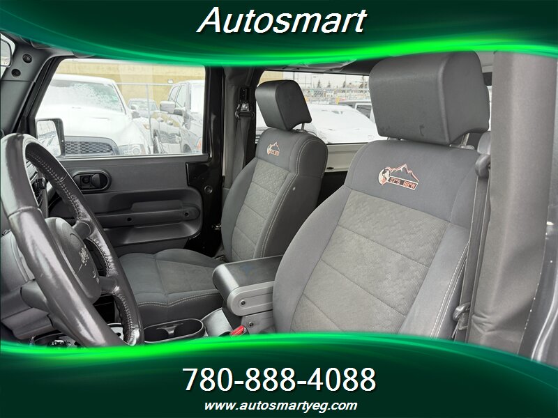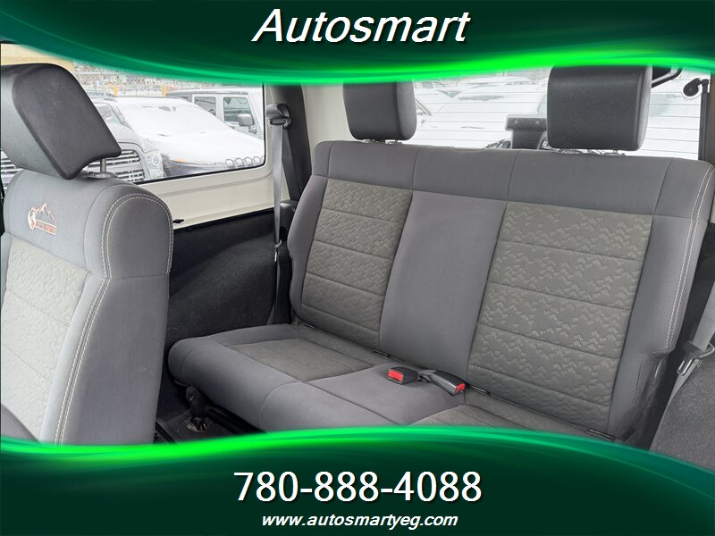 Factory-equipped with a V6 engine and available manual or automatic transmission mated to part-time four-wheel drive with low-range gearing. The Mountain Edition adds unique exterior trim and badging plus upgraded wheel design. Standard factory features include a removable hard or soft top, power windows and door locks, air conditioning, cruise control, AM/FM/CD audio with auxiliary input, gray cloth seating, alloy wheels, fog lamps, anti-lock brakes, traction control/electronic stability control, front and side airbags, skid protection and factory tow hooks.