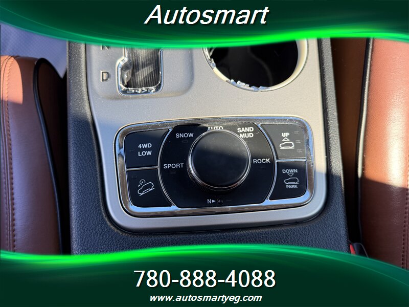 2011 Jeep Grand Cherokee Overland in Black with Orange leather interior, powered by the HEMI 5.7L V8 (360 hp, 390 ft-lb). Factory equipment includes leather seating with heated and ventilated front seats, power-adjustable driver seat with memory, heated rear seats and heated steering wheel, dual-zone automatic climate control, panoramic sunroof, Uconnect infotainment with navigation, Bluetooth and premium audio, rearview camera and parking sensors, and factory air suspension for improved ride and capability. Fuel economy is 18.1 L/100 km city and 12.4 L/100 km highway. Vehicle is in excellent overall condition and has a CARFAX.