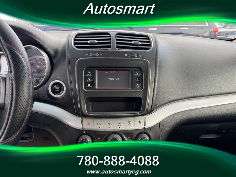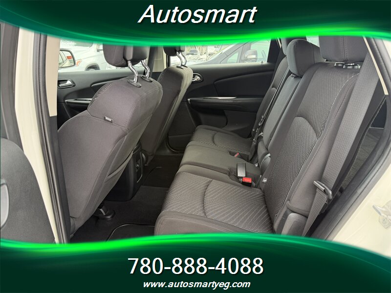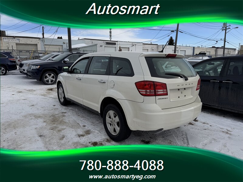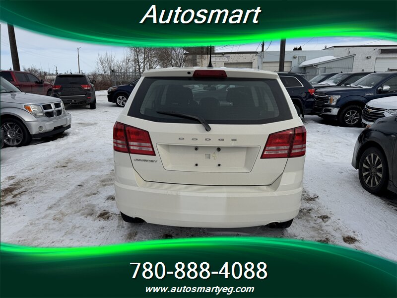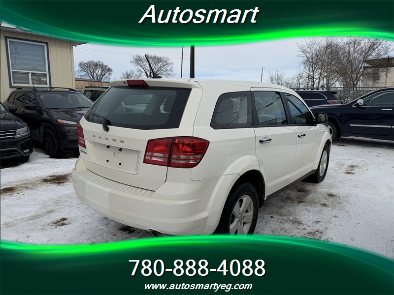2013 Dodge Journey American Value Package powered by a 2.4L I4 producing 173 hp and 166 lb-ft of torque, with fuel economy of 12.4 L/100 km city and 9.0 L/100 km highway. Factory equipment includes cloth seating, manual front-seat adjustments, a 60/40 split second row and fold-flat rear seats for flexible cargo/passenger arrangements, air conditioning, cruise control, power windows and door locks with remote keyless entry, an AM/FM/CD stereo with auxiliary and USB inputs, tilt steering and essential convenience features. Standard safety equipment includes ABS, traction and stability control, front-seat side airbags and full-length side curtain airbags, and a tire pressure monitoring system. Vehicle is in excellent overall condition with a CARFAX.