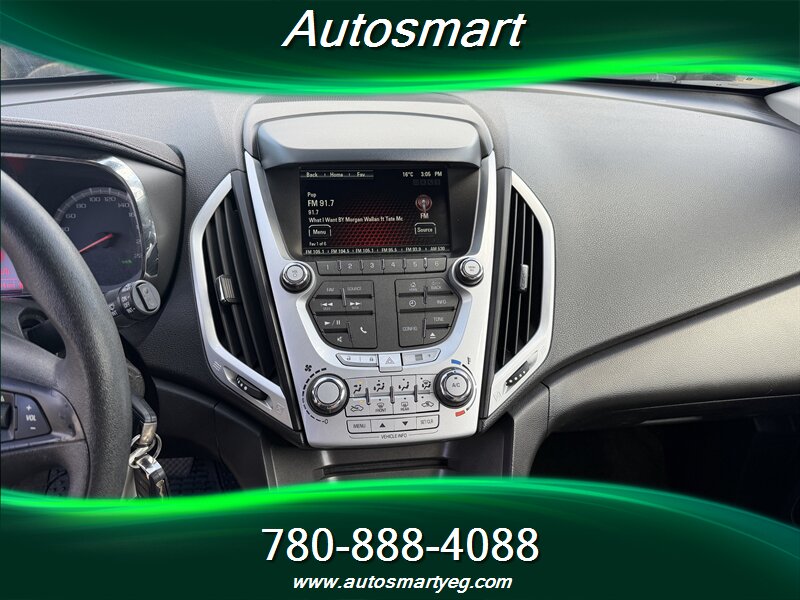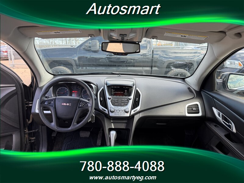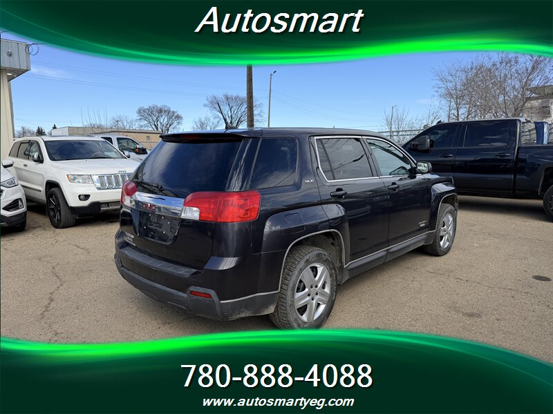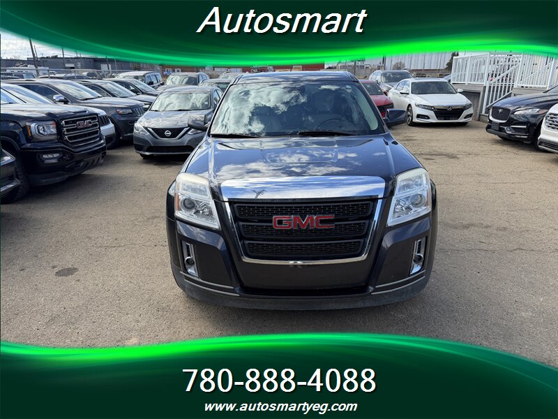 2013 GMC Terrain SLE-1 powered by the Ecotec 2.4L I4 (182 hp, 172 lb-ft). Factory-standard equipment includes cloth seating with a 60/40 split-folding rear bench, full power accessories (windows, locks, mirrors), air conditioning, cruise control, tilt steering wheel with audio controls, remote keyless entry, AM/FM/CD/MP3 stereo with auxiliary and USB inputs, alloy wheels, and safety features such as ABS, traction and stability control, multiple airbags and tire pressure monitoring. Fuel economy is 10.7 L/100 km city and 7.4 L/100 km highway. Vehicle is in excellent overall condition and has a CARFAX.