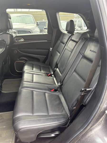 Factory Summit features typically include premium Nappa leather seating with heated and ventilated front seats and heated rear seats, power-adjustable front seats with memory, heated leather-wrapped steering wheel, wood and chrome interior trim, power sunroof, power liftgate, 8.4-inch Uconnect touchscreen with navigation, Bluetooth and USB connectivity, premium audio system, dual-zone automatic climate control, rearview camera with parking sensors, keyless entry/ignition and remote start, and advanced driver-assistance systems such as adaptive cruise control and blind-spot monitoring.