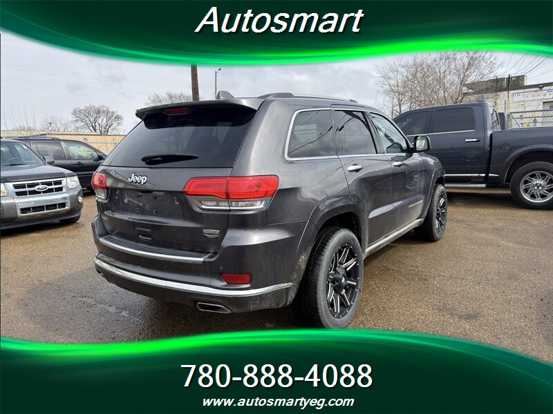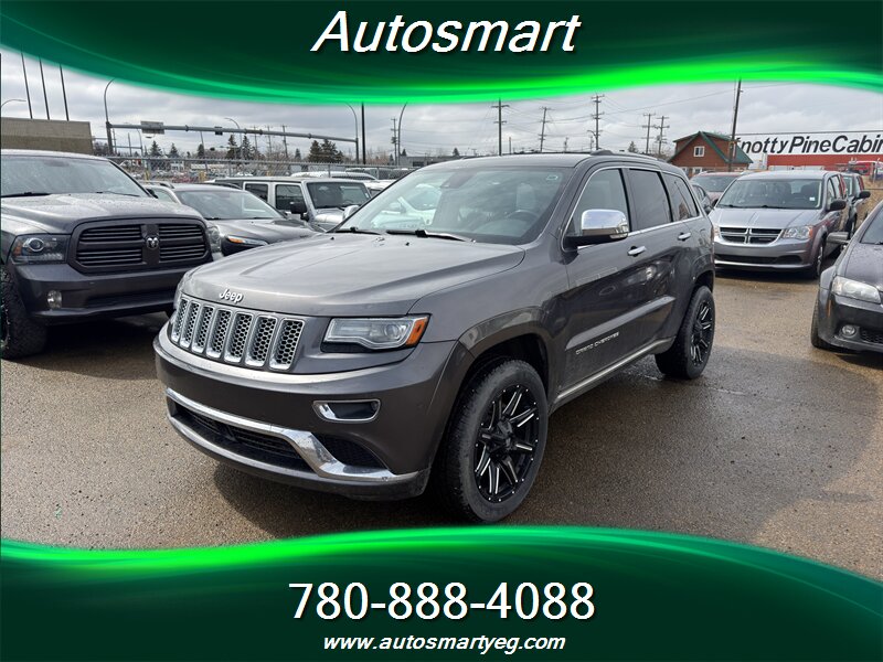 2014 Jeep Grand Cherokee Summit — ONE OWNER, no accidents and a CARFAX — powered by a HEMI 5.7L V8 producing 360 hp and 390 ft·lb of torque; exterior Gray, interior Black, excellent overall condition; fuel consumption approx. 16.8 L/100 km city and 11.8 L/100 km highway.