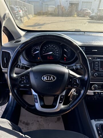 This 2014 Kia Rio EX is equipped with a 1.6L I4 engine delivering 138hp and 123ft. lbs. of torque. The factory default features include keyless entry, power windows, power mirrors, air conditioning, AM/FM stereo with CD player, USB and auxiliary inputs, Bluetooth connectivity, steering wheel-mounted audio controls, cruise control, and 16-inch alloy wheels. With under 107,000 kilometers on the odometer, averaging less than 9,000 kilometers per year, this Kia Rio EX achieves 8.7 L/100km in the city and 6.4 L/100km on the highway. Overall, this vehicle is in excellent condition.