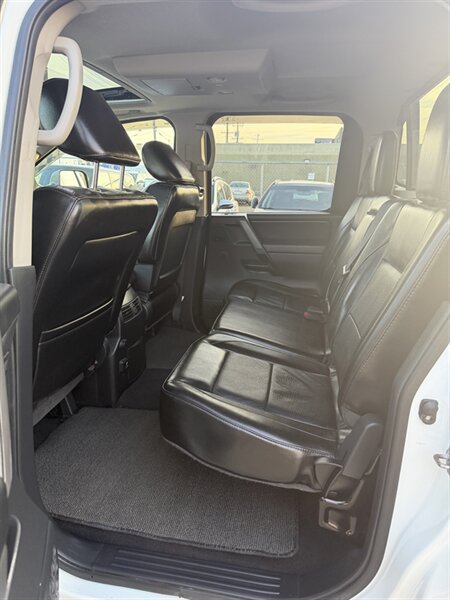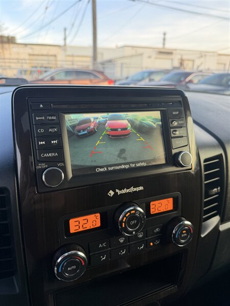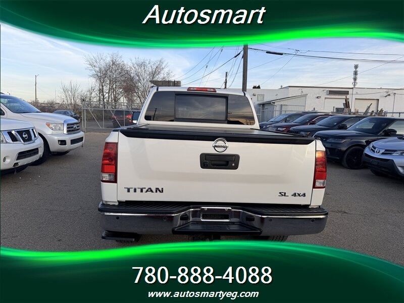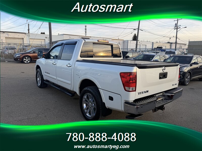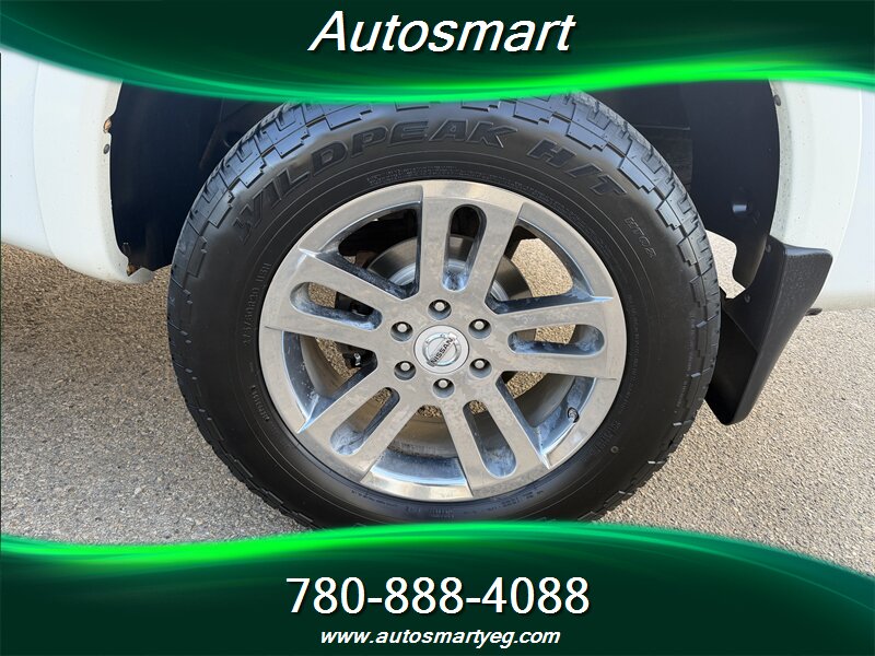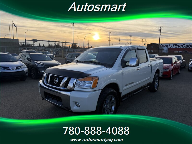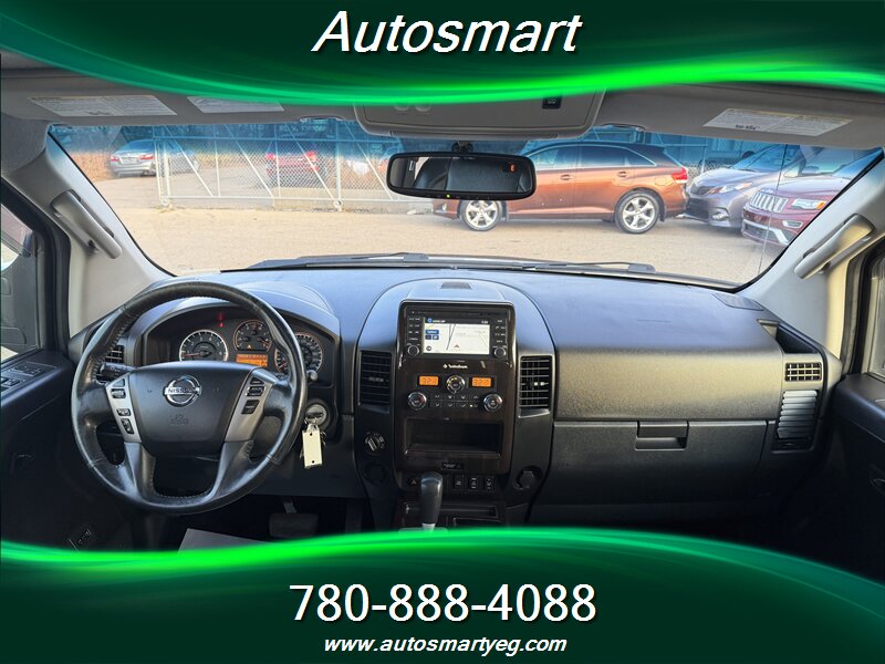 Introducing the 2014 Nissan Titan SL, a robust full-size pickup truck that combines power and comfort. Powered by a 5.6L V8 engine, it delivers 317 horsepower and 385 ft-lbs of torque, ensuring impressive performance for both work and play. The Titan SL features a spacious and refined interior, equipped with leather upholstery, heated front seats, and a premium sound system for an enhanced driving experience. Key factory features include a navigation system, rearview camera, and a spray-in bed liner for added utility. With fuel efficiency rated at 19.6 L/100km in the city and 13.8 L/100km on the highway, this vehicle strikes a balance between capability and economy. This particular unit is in excellent overall condition and comes with a CARFAX report, making it a reliable choice for any driver.