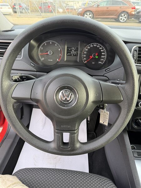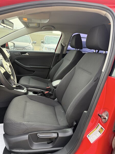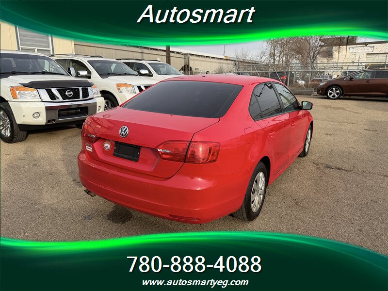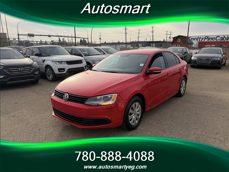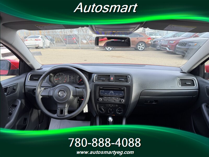 The 2014 Volkswagen Jetta Trendline Plus in striking red offers a blend of style and practicality. This sedan features a 2.0L inline-4 engine, delivering a smooth and efficient ride. Standard factory features include a touchscreen infotainment system with Bluetooth connectivity, a four-speaker audio system, and power windows. The interior is adorned with comfortable black cloth seating, ensuring a pleasant driving experience. Additional highlights include air conditioning, cruise control, and remote keyless entry. This vehicle is in excellent overall condition and comes with a CARFAX report, making it a reliable choice for any driver