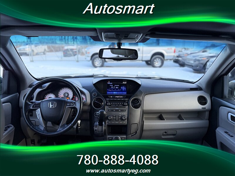 Discover the 2015 Honda Pilot EX-L w/DVD, a versatile and family-friendly SUV powered by a robust 3.5L V6 engine, delivering 250 horsepower and 253 lb-ft of torque. This model boasts a spacious interior with seating for up to eight passengers, making it ideal for both daily commutes and road trips. Factory default features include leather-trimmed seating, a power moonroof, and a rear entertainment system with a DVD player, ensuring comfort and entertainment for all occupants. The EX-L also comes equipped with a premium audio system, tri-zone climate control, and a rearview camera for added convenience and safety. With fuel efficiency ratings of 13.8 L/100km in the city and 9.8 L/100km on the highway, this vehicle is designed for both performance and economy. It is in excellent overall condition and comes with a CARFAX report, providing peace of mind for prospective buyers.