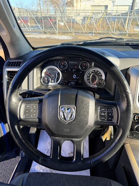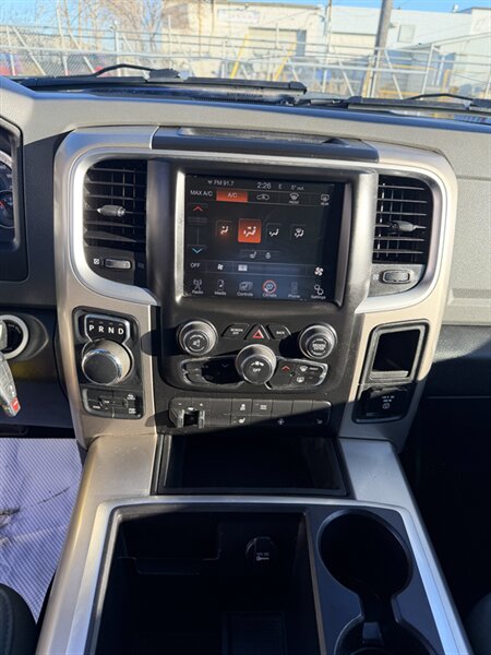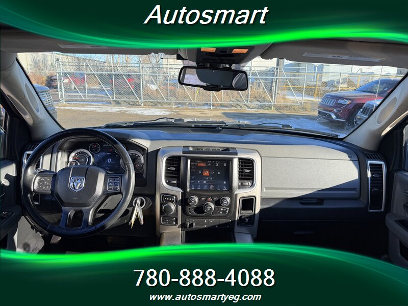 The 2015 RAM 1500 SLT is a robust pickup truck, equipped with a powerful HEMI 5.7L V8 engine that delivers an impressive 395 horsepower and 410 ft-lbs of torque. This vehicle offers a blend of performance and practicality, achieving fuel efficiency ratings of 15.7 L/100km in the city and 11.2 L/100km on the highway.