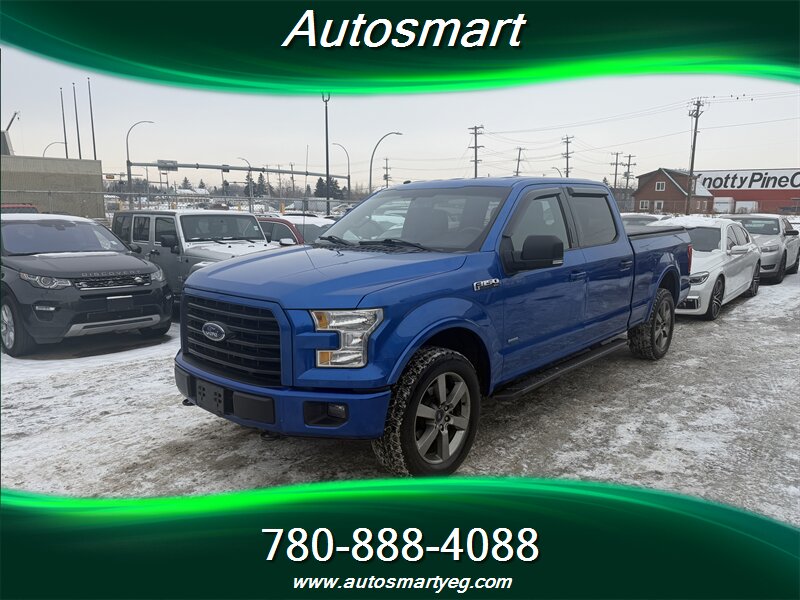 2016 Ford F-150 XLT powered by the EcoBoost 3.5L Twin Turbo V6 (365 hp, 420 ft-lb) paired with a 6-speed automatic. Factory-equipped XLT features include Ford SYNC with Bluetooth and USB connectivity, AM/FM audio, power windows and locks with remote keyless entry, cruise control, steering-wheel audio controls, air conditioning, cloth seating with configurable front seating, tilt/telescoping steering column, alloy wheels, factory towing prep package, ABS, traction and stability control, and a full complement of airbags. CARFAX, below 99,000 km (averaging under 9,000 km/year). Fuel consumption: 14.7 L/100 km city, 10.7 L/100 km highway. Vehicle is in excellent overall condition.