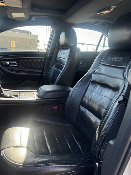 Experience a blend of performance and sophistication with this 2016 Ford Taurus SHO. Powered by a robust EcoBoost 3.5L Twin Turbo V6 engine, it delivers an impressive 365 horsepower and 350 lb-ft of torque, ensuring a dynamic driving experience. The Taurus SHO features all-wheel drive for enhanced handling, along with a six-speed automatic transmission for smooth gear shifts.