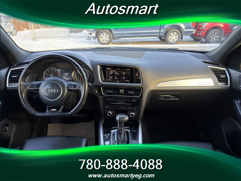 Technology and safety features from the factory include Audi MMI infotainment with navigation, Bluetooth hands-free connectivity, steering-wheel audio and phone controls, rearview camera with parking sensors, a premium audio system, anti-lock brakes, stability and traction control, multiple airbags, and tire pressure monitoring.