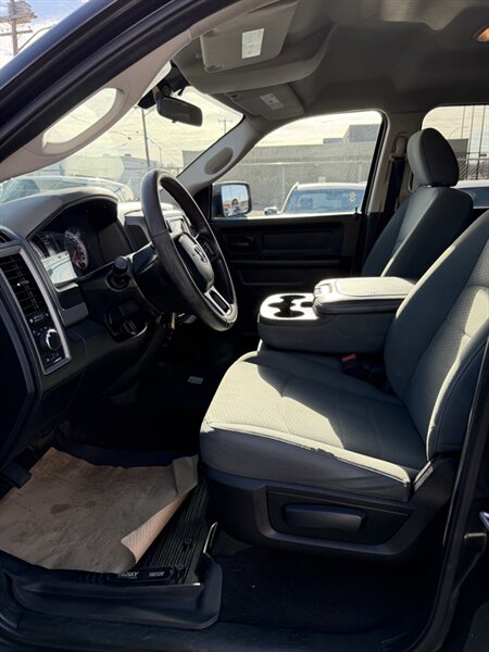 The 2017 RAM 1500 ST is a robust and reliable pickup truck, ideal for both work and leisure. With under 88,000 kilometers, this vehicle has been well-maintained, averaging less than 10,000 kilometers per year. It features a 3.6L V6 engine paired with an 8-speed automatic transmission, delivering a balance of power and efficiency. The interior includes comfortable seating for up to three, vinyl flooring for easy cleaning, and a practical layout with a 5-inch touchscreen display for audio and connectivity options. Factory-installed features include air conditioning, cruise control, and a locking tailgate for added security. This RAM 1500 ST is in excellent overall condition and comes with a CARFAX report, ensuring peace of mind for potential buyers.