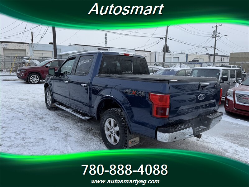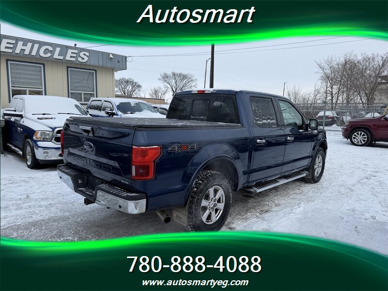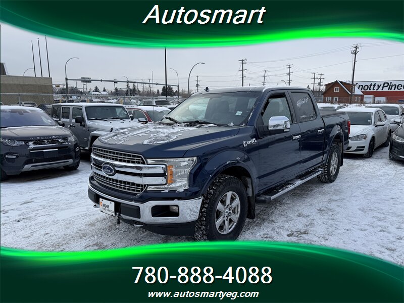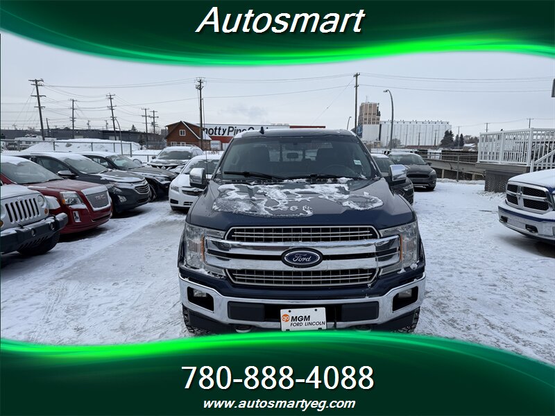 2018 Ford F-150 Lariat powered by the EcoBoost 3.5L twin-turbo V6 (375 hp, 470 lb-ft) with Ford’s 10-speed automatic transmission. The truck uses Ford’s high-strength steel frame and aluminum-alloy body for a balance of strength and weight savings.