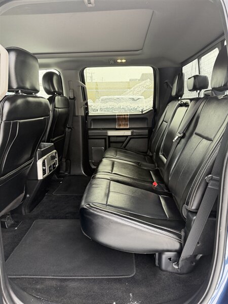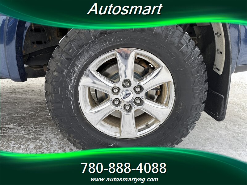Factory-equipped features include leather-trimmed seating and power-adjustable front seats, dual-zone automatic climate control, keyless entry with push-button start, and an integrated Ford infotainment system with touchscreen, Bluetooth connectivity and smartphone integration. Exterior and convenience equipment from the factory include chrome trim accents, power side mirrors, alloy wheels, and remote start. Standard safety and driveline features include ABS, stability and traction control, multiple airbags, a rearview camera, tire pressure monitoring and factory tow-ready engineering with electronic stability/trailer sway control.