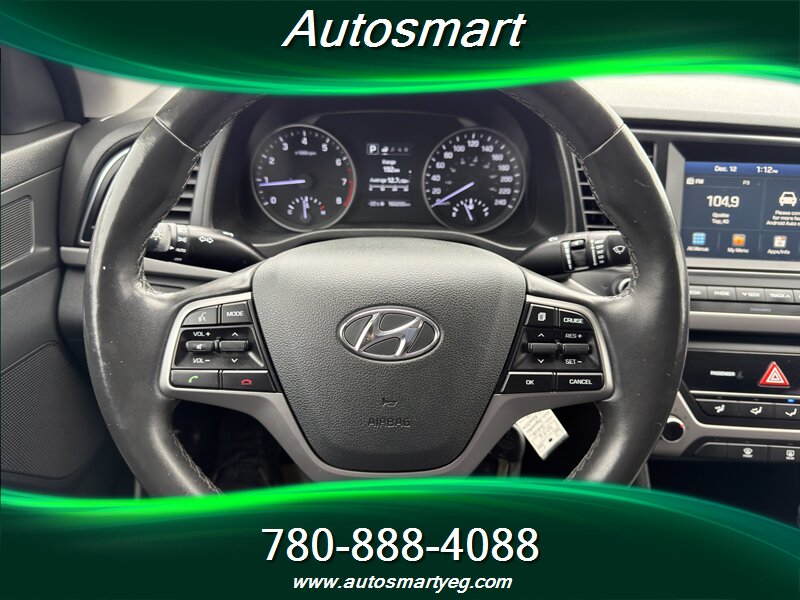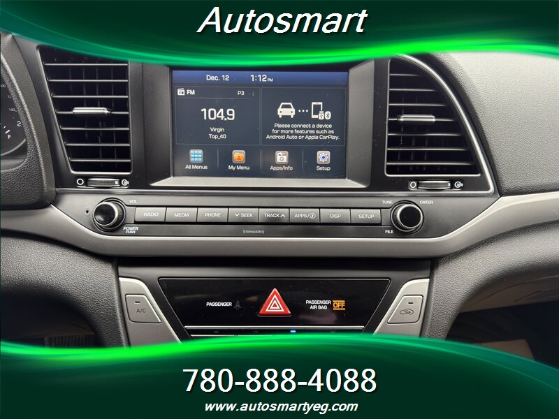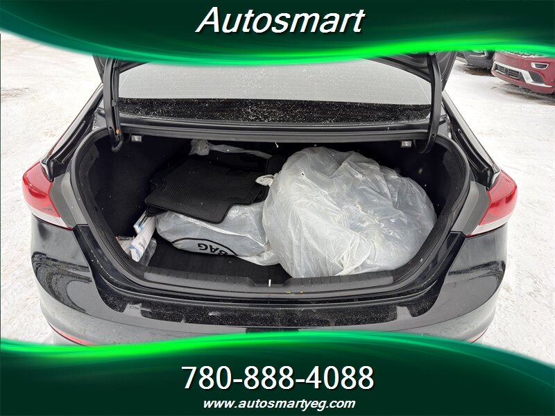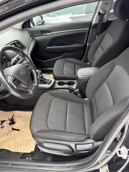Introducing the 2018 Hyundai Elantra GL in a sleek black exterior and matching black interior. This compact sedan is in excellent overall condition and comes with a CARFAX report. Factory features include a 2.0L 4-cylinder engine, a 6-speed automatic transmission, and a spacious cabin equipped with cloth seating. The Elantra GL offers a 7-inch touchscreen display with Apple CarPlay and Android Auto compatibility, Bluetooth connectivity, and a rearview camera for added convenience. Safety features include a suite of airbags, stability control, and traction control, ensuring a secure driving experience. Experience a blend of comfort, technology, and reliability with this well-maintained vehicle.