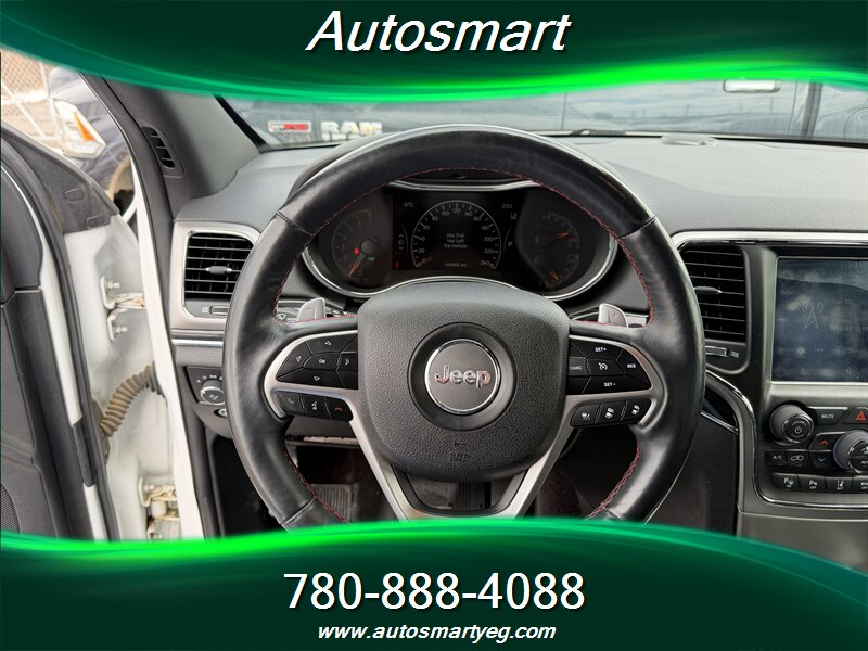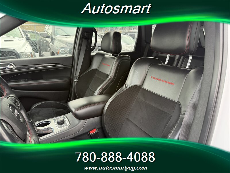 2018 Jeep Grand Cherokee Trailhawk — HEMI 5.7L V8 (360 hp, 390 lb-ft). Excellent overall condition with a clean CARFAX. Fuel economy: 16.8 L/100 km city, 10.7 L/100 km highway.